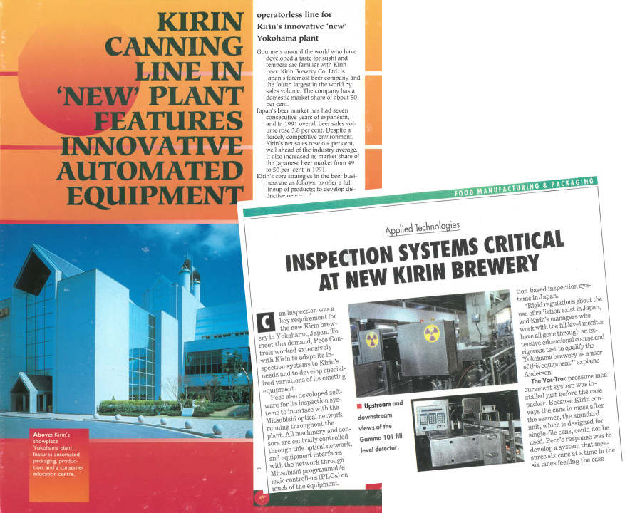 Develops and supplies fully automated fill level systems and sampling for first fully automated beer canning line for the Kirin New Yokohama brewery