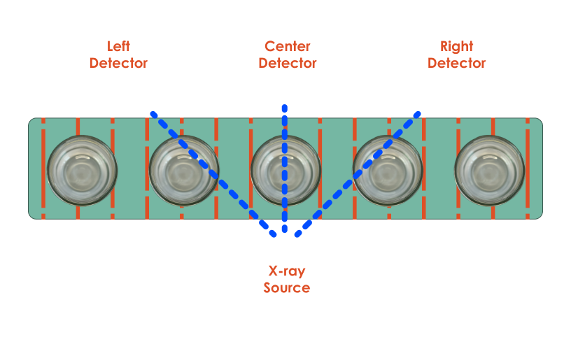 Expands the multi-beam ScanTrac Duo system with two angled beams to include a third beam in the ScanTrac Trio. The three beam Trio model enables high speed X-ray inspection of containers, greatly improving resolution on the bottom of the container and detection of asymmetrical shaped contaminants