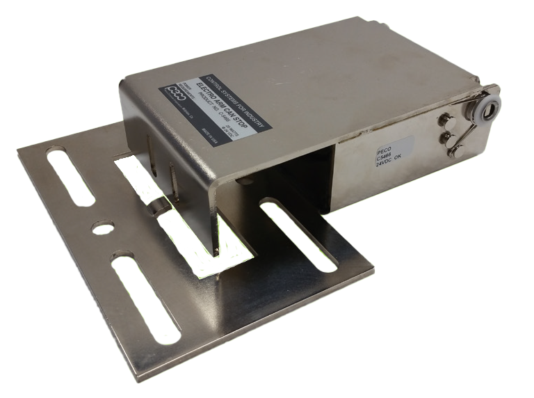 Available in normally open or normally closed models. In the normally open (Electro-Arm) configuration, the actuator finds and divides containers with an increasing force which reaches its maximum as containers build up behind the stop when power is applied. The stop returns to the open state when power is taken off. In the normally closed (Auto-Stop) configuration a permanent magnet holds the armature and container in place. On application of power the actuator is withdrawn and the stop opens, allowing containers to flow. The stop returns to the closed state after power is taken off.